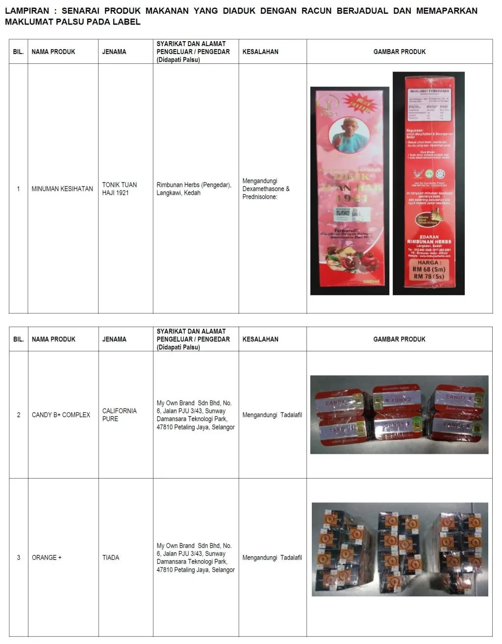 DG Hisham also said, all businesses including online traders who still have stocks of the products, were instructed to immediately stop the sales and contact the nearest District Health Office to have it confiscated. He urged those who are using the products to immediately seek advice and treatment from health professionals and advised the public to be careful and aware when buying food products that are mixed with harmful substances.