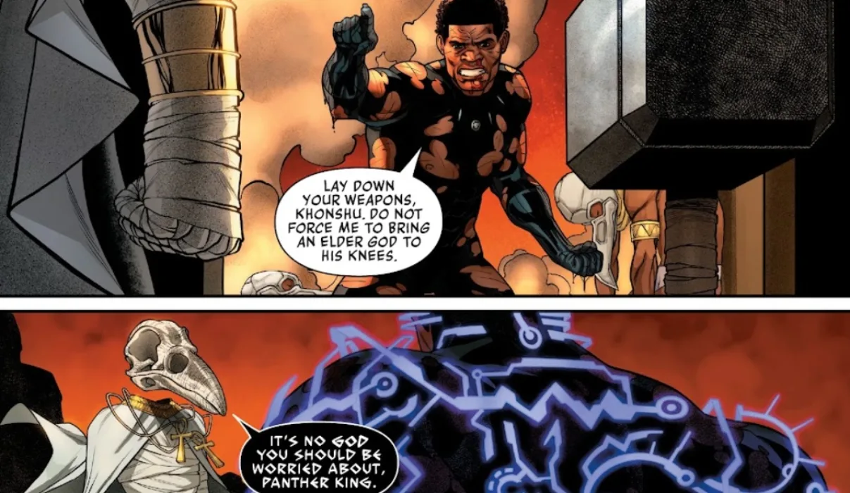 In Egyptian mythology, Sekhmet is a lion goddess associated with the sun. So, why would an Egyptian god be mentioned in the same breath with a Wakandan one? The thing is the patron god of Wakanda, Bast is actually part of both the Egyptian and Wakandan pantheon of gods as well. In Egypt, she might be better known for her name Bastet. This fact has been established within the Black Panther comics. So for all intents and purposes, she knows of the other Egyptian gods like Ra, Osiris, Anubis and of course, Marvel’s Egyptian God of the Moon, Khonshu. Bast is essentially Khonshu’s half-sister.