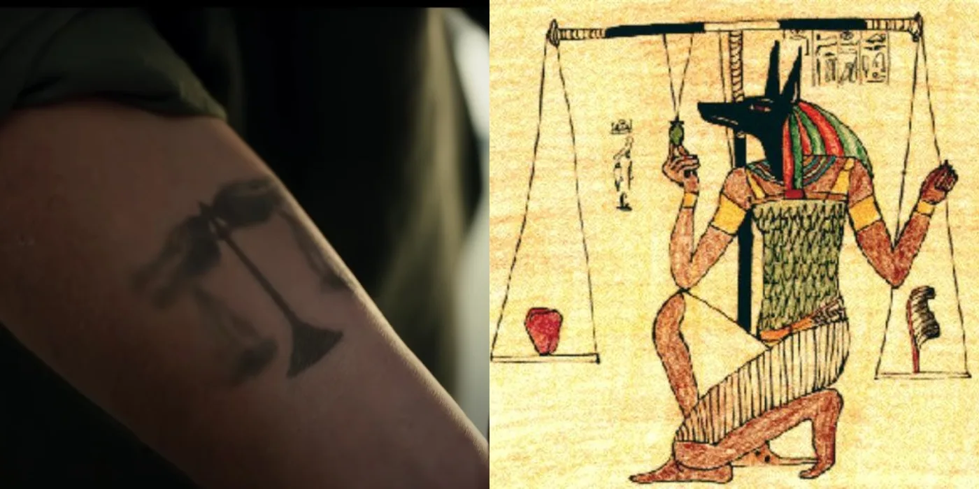 As of now, we’re fairly certain that the villain of “Moon Knight”, Arthur Harrow is drawing his power from the Egyptian God of the Dead, Anubis. In the TV spot trailer, we see a moving tattoo on Harrow’s arm as Steven stares in disbelief. A tattoo of two scales tipping back and forth. In ancient Egyptian mythology, Anubis is believed to have judged the dead by weighing their hearts on scales with a feather on the other platform.