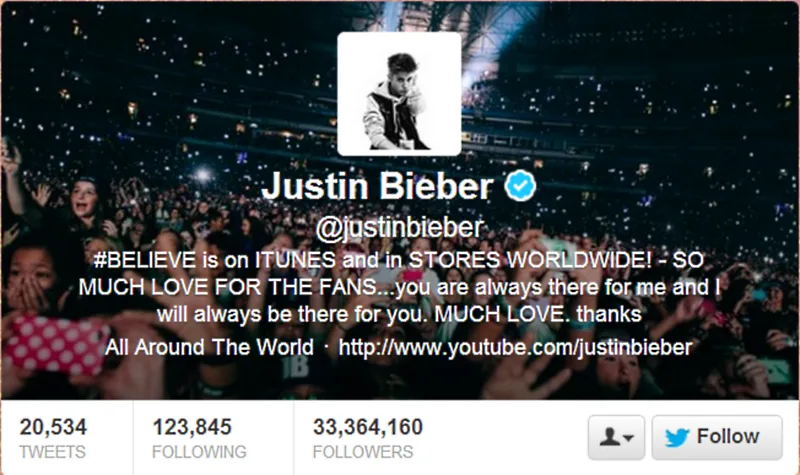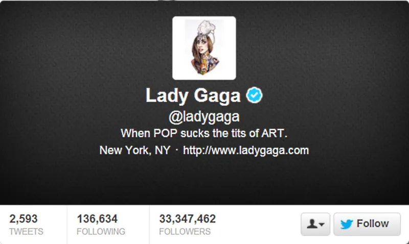 Justin Bieber, who initially tailed quite a distance behind Lady Gaga on the popular microblogging site, now has oh, only about 33,364,160 followers while Mama Monster comes in a close second with 33,347,462 followers.