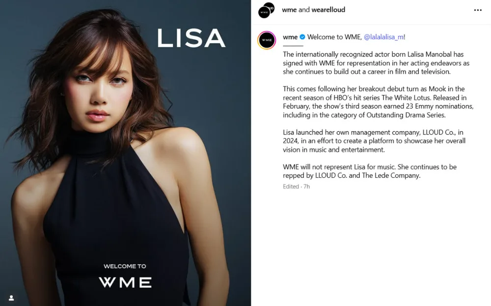 This move comes after Lisa’s breakout debut as Mook in the third season of “The White Lotus”, which earned 23 Emmy nominations, including for “Outstanding Drama Series”. The 28-year-old also graced the award ceremony, which took place earlier this month. For now, there are few details about her partnership with WME. However, the statement from the agency hints that Lisa may use her real name, Lalisa Manobal (ลลิษา มโนบาล), for her acting ventures.