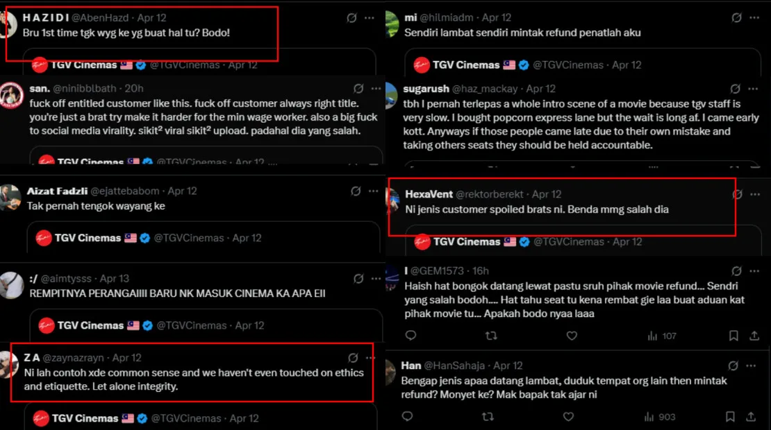 Netizens reacted to the post with many criticising the original uploader for their sense of entitlement, pointing out that TGV was not responsible for their late arrival. Others speculated that the group may have been first-time cinema-goers, suggesting they were simply unfamiliar with the rules. As for the TikTok user, they have since deactivated their account following backlash from the public.