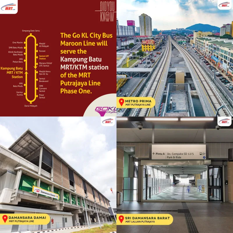 Based on previously released information, the soon-to-be launched Putrajaya Line will provide MRT passengers a seamless transfer to the MRT Kajang Line at Kwasa Damansara station. In terms of public transportation, feeder buses and GoKL buses will be available at Kampung Batu station.