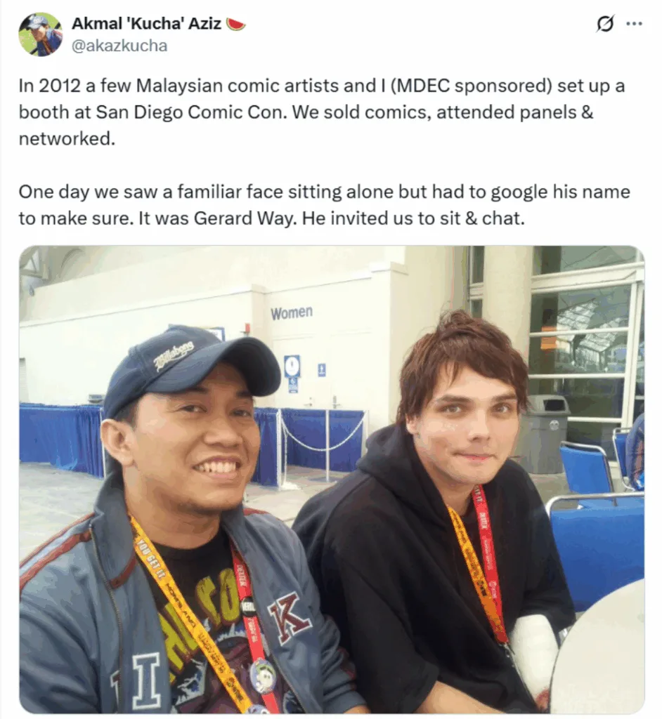 Not anyone can say that they met a global superstar by chance – but this Malaysian can! Local comic artist and animator Akmal “Kucha” Aziz recently dropped a “lore” about himself involving My Chemical Romance frontman Gerard Way!