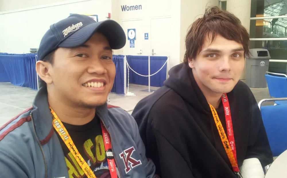 While at SDCC, the group set up a booth, sold comics, attended panels and networked. However, on one of the days they were there, the group saw a familiar face sitting alone in the lounge area. After Googling the individual on the search engine, the group confirmed that the familiar face was none other than My Chemical Romance co-founder and frontman Gerard Way. As the group greeted him, the singer invited them to sit and chat.