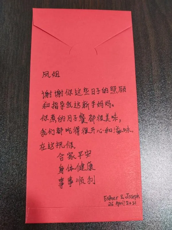 Thankfully, her employers are all friendly. “It’s very tiring to stay up all night to accompany a wife in confinement, and the work pressure is high. But, meeting a good employer will reduce a lot of pressure,” Li stated. She also shared that meeting other confinement nannies from Malaysia has helped to relieve her homesickness.