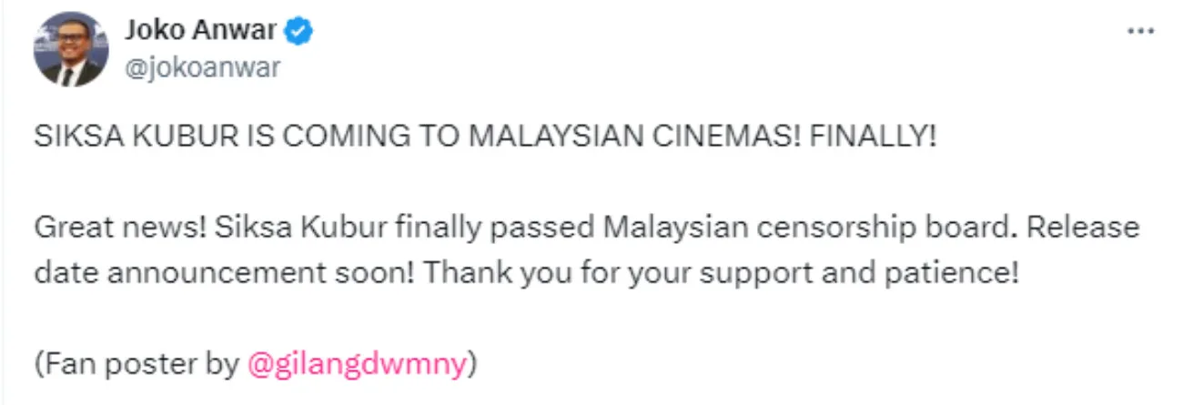 The most common speculation is that the theatrical release of “Siksa Kubur” will be heavily edited. Movies that want to pass censorship in Malaysia will have to revise or remove certain scenes to fit the conditions set by the censorship board. Unfortunately, this also means that “Siksa Kubur” may be shortened or lack context as it isn’t complete. However, Joko Anwar has yet to clarify if the Malaysian release would differ from what he had intended.