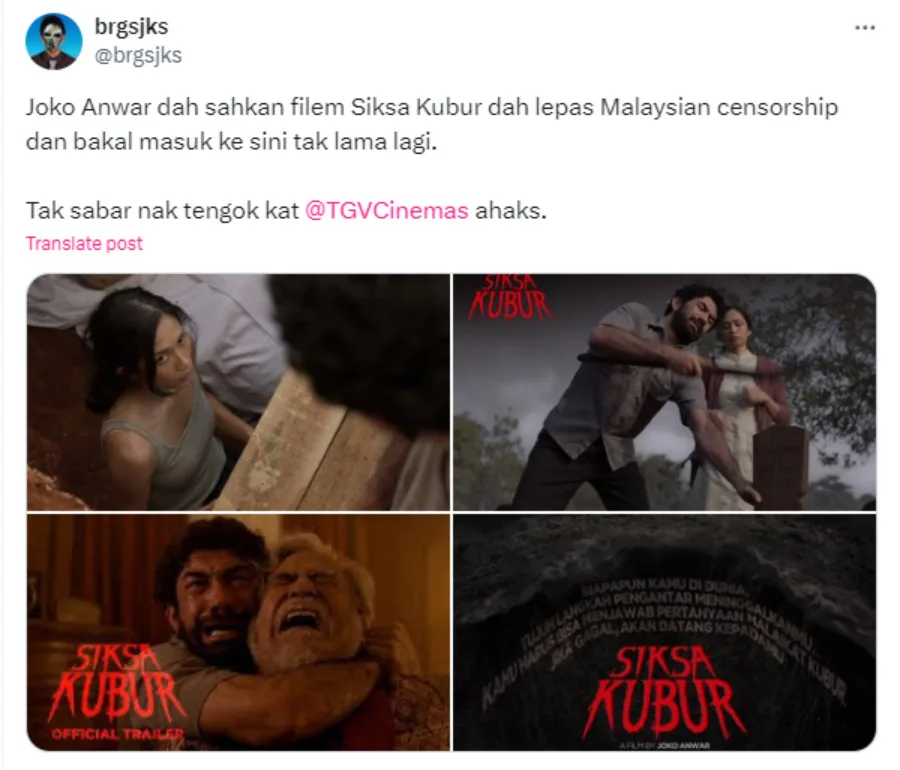 Indonesian film director Joko Anwar, known for the “Pengabdi Setan (Satan’s Slaves)” franchise, recently announced that his film, “Siksa Kubur”, has been approved by the Malaysian censorship board and will be released in theatres in Malaysia. The news was well-received by local horror fans, who are excited to watch the film on the big screen. For those curious, this movie talks about what happens beneath the grave after one dies, essentially depicting the afterlife based on religious beliefs.