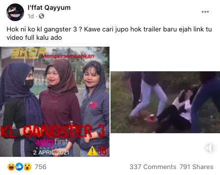 Not long after the video went viral online, a number of local netizens have also taken to their respective social media accounts to expose 3 of the female culprits’ faces on social media. FB user I’ffat Qayyum jokingly remarked, “Are these girls the main cast for the film ‘KL Gangster 3’? I found the trailer (the viral video) only, could you guys recommend me the full version if there is one available?”