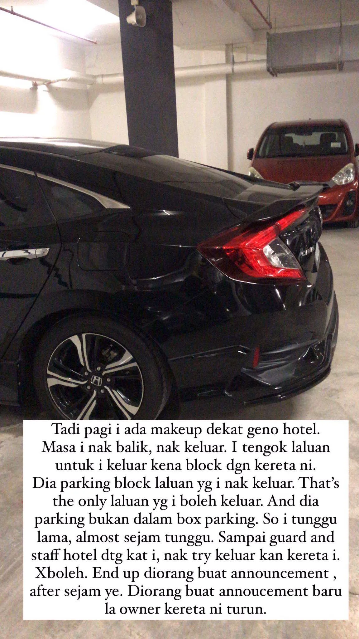 In detailing the triggering episode on her page, the makeup artist revealed that she had just got back from work at Geno Hotel (the exact location wasn’t disclosed in detail). “When I came out, I saw that the lane to exit (the building) was blocked by this car. That’s the only path I could use to get out. And they didn’t even bother to park inside the parking box,” Amallina wrote.