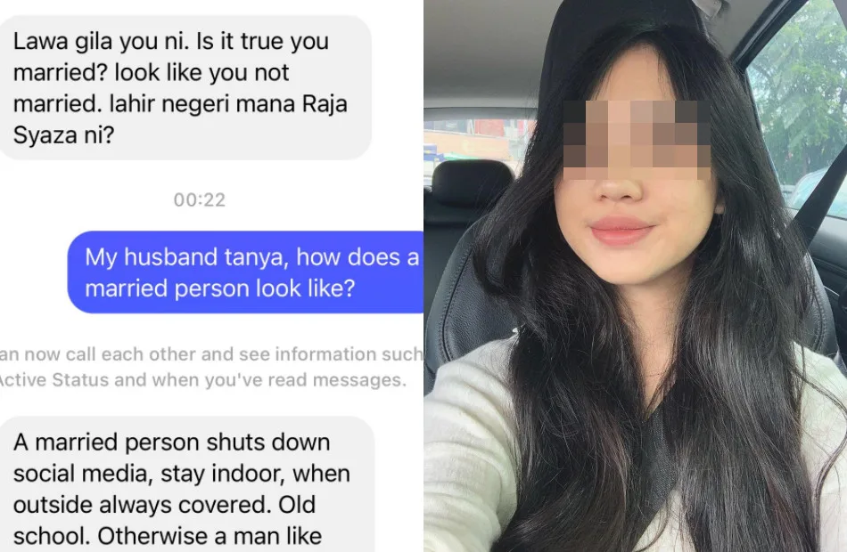 The female netizen recently uploaded a screenshot of a DM she received from a man who harassed her on Facebook. As seen in the screenshot, the sender had reached out to Syaza to enquire: “You’re so pretty. Is it true you’re married? Where are you from?” Raja Syaza replied sarcastically, “My husband asked, ‘How does a married person look like?”