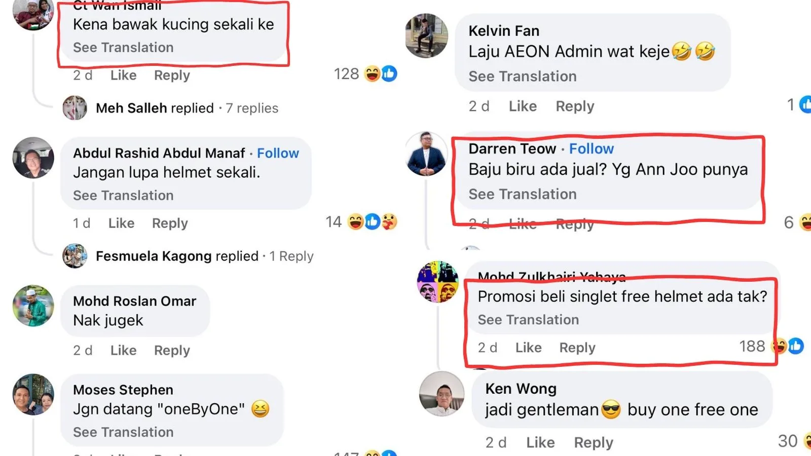 Malaysians wasted no time posting funny replies in their characteristic fashion, trolling the brand and sharing inside jokes that locals understand. One user commented on the cat in the video that adorably nosed around, another asked if the helmet comes with the singlet, and one even requested coloured shirts to match the other man, who was dressed in blue.