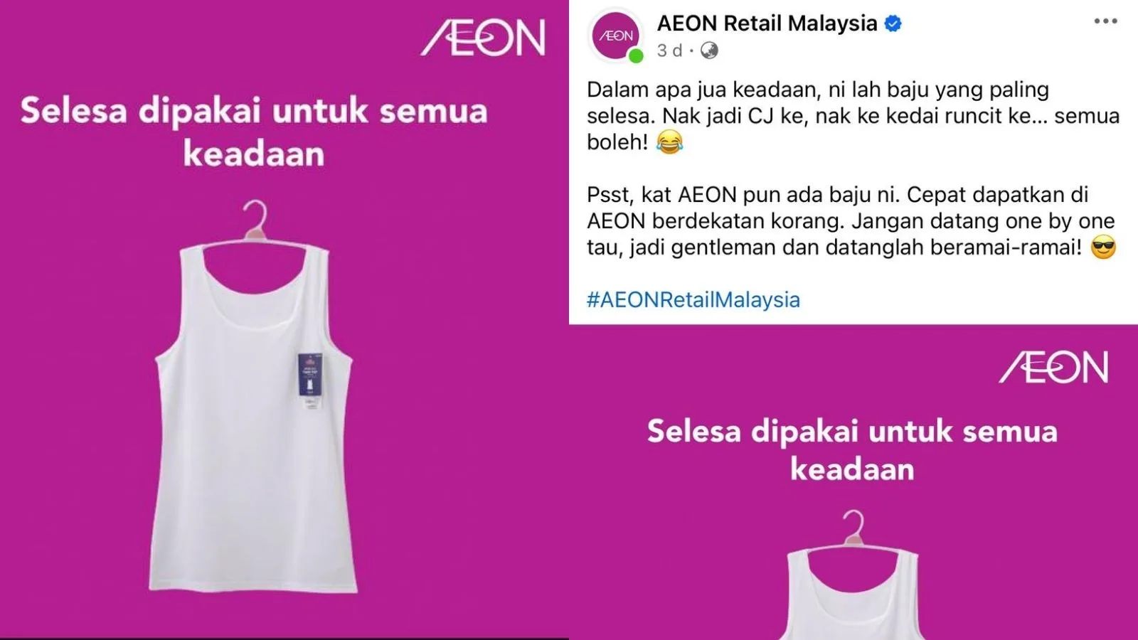 AEON recently posted a promo on their official Facebook page, showcasing a singlet sold at their store, which is an obvious reference to what the man in the viral clip was wearing. The product picture was captioned, “Selesa dipakai untuk semua keadaan,” which translates to “Comfortable to wear for any occasion”.