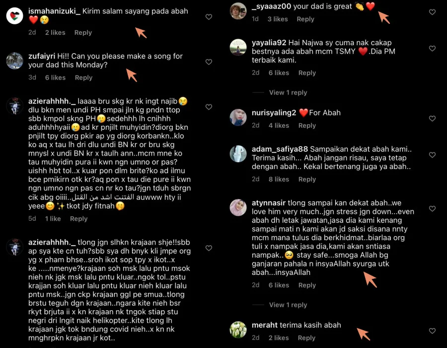 After the news of Tan Sri Muhyiddin Yassin’s resignation made headlines this week, the comments section on his celebrity daughter, NJWA‘s Instagram has been flooded with several heart-warming comments from the public.