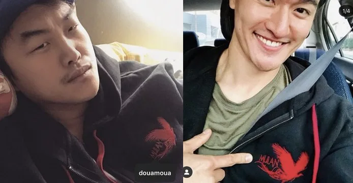 Photos of the film’s crew – Doua Moa and Chen Tang – wearing hoodies with the the “Mulan” logo together with a phoenix motif have been circulating online.