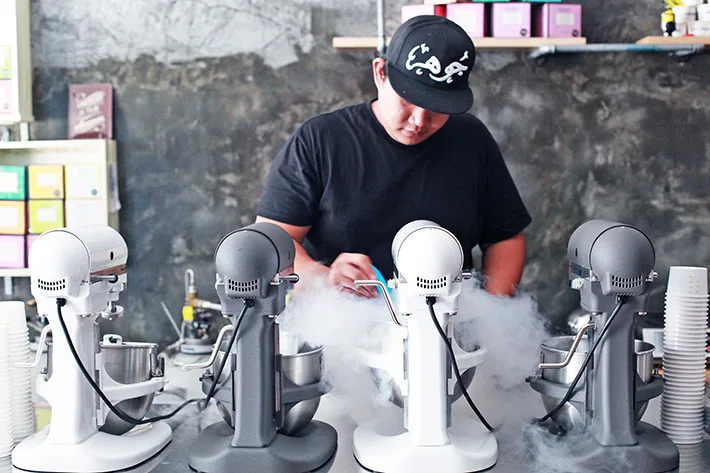 Instead of the traditional ice-cream, satisfy your sweet tooth at The Ice-Cream Project (TIP). The vegan-friendly dessert is made with liquid nitrogen and is free from additives and preservatives. Liquid nitrogen ice-cream is nothing new, but it can still elicit oohs and aahs from seasoned sweet tooth individuals. Here, less is more as TIP only features 4 fuss-free flavours: sticky butterscotch, fudgy brownies and cream, milk, as well as chocolate.