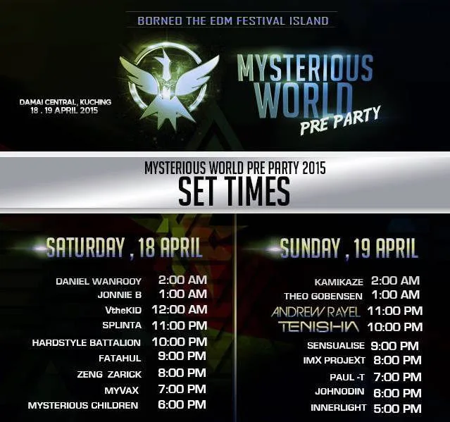 The massive electronic dance music Mysterious World pre-party organised by Mysterious Asia which was supposed to take place today as well as tomorrow (18th and 19th April 2015) has been cancelled.