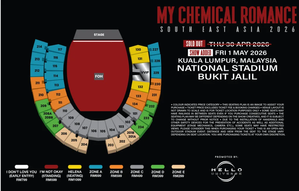 Hello Universe also claimed that Malaysia would be the only stop in Southeast Asia to get two shows. So, if you didn’t get a ticket for Day 1, here’s your last chance to catch MCR in Malaysia!