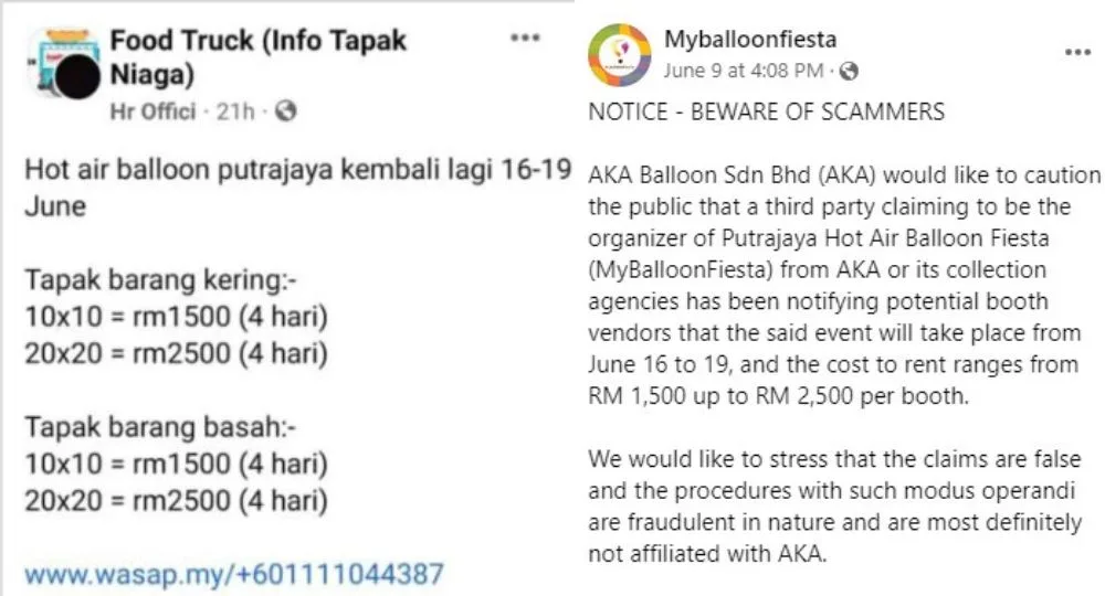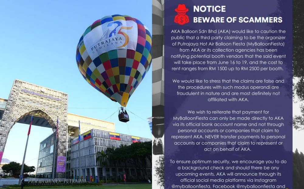 However, AKA Balloon Sdn Bhd, the true organisers of the festival, denied the claim and reported the advertisement to the authorities. So far, only AKA Balloon has filed a police report against the advertisement. The police urges victims that have come across the fake ad to make a report immediately as it could help in the ongoing investigation.