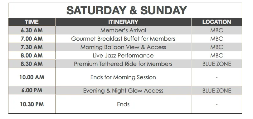 A new area this year, MyBalloonClub, will offer an option (but with a price) to visitors who would like to break away from the crowds and indulge in a gourmet breakfast buffet with the best picturesque view. MyBalloonClub is located exactly at Monumen Alaf Baru with a private entrance and it provides premium tether rides and admission to Balloon Launch Site while live jazz performance sets the ambience after morning sessions.