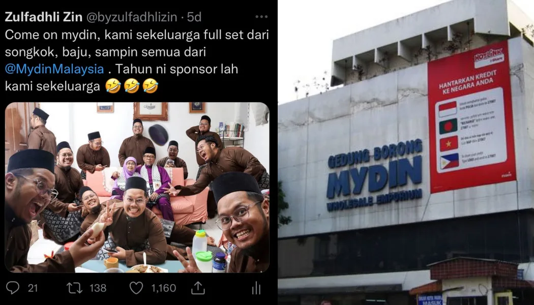 Last week, a Twitter post by a user named Zulfadhli Zin went viral online. In his tweet, he jokingly asked Mydin to sponsor him and the rest of his family members a new set of Hari Raya outfits. Not only that, he even boldly tagged the official account of the local retailer in his caption!