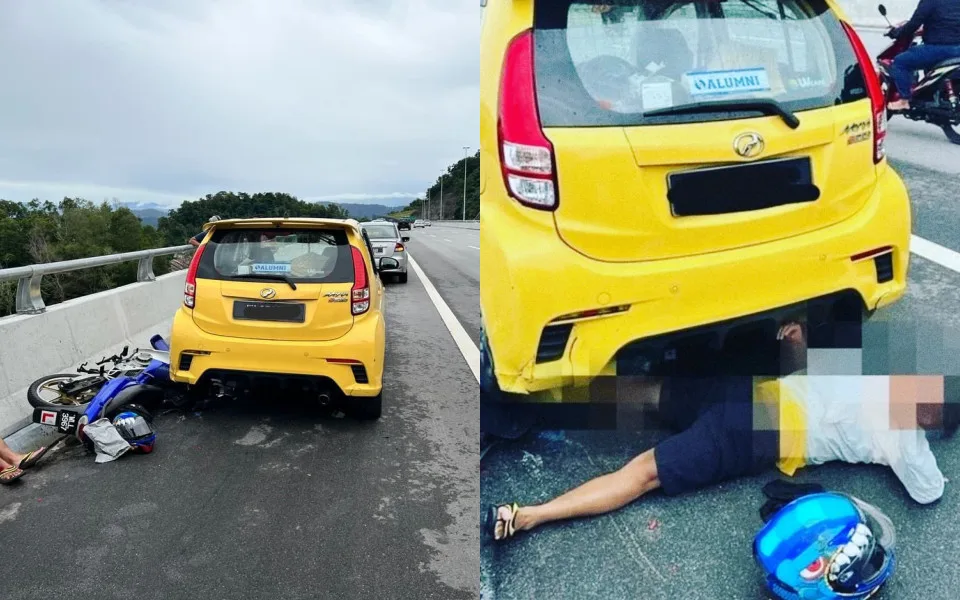 In his statement, the police stated that the driver had stopped his yellow MyVi in the emergency lane to enjoy the scenic view along the 16.6km stretch of the first phase of the highway. “A motorcyclist, who was riding a Suzuki motorcycle, then crashed into the car from behind, injuring his leg. He was taken to the Ampang Hospital for treatment,” Mohamad Farouk revealed. The accident also caused both vehicles to be damaged.
