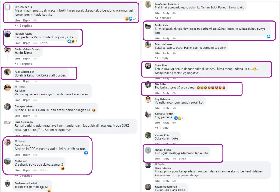 The case is being investigated for obstruction of traffic and causing an accident. Those found guilty of committing the offence can be compounded up to RM300. The full statement, which was posted on the Polis Daerah Ampang Jaya Facebook page, has since been flooded with numerous comments from netizens. “The express lane is more crowded at night. It’s like at Bukit Tinjau. If they don’t put this to stop, people can even open a nasi lemak stall there,” one netizen wrote.