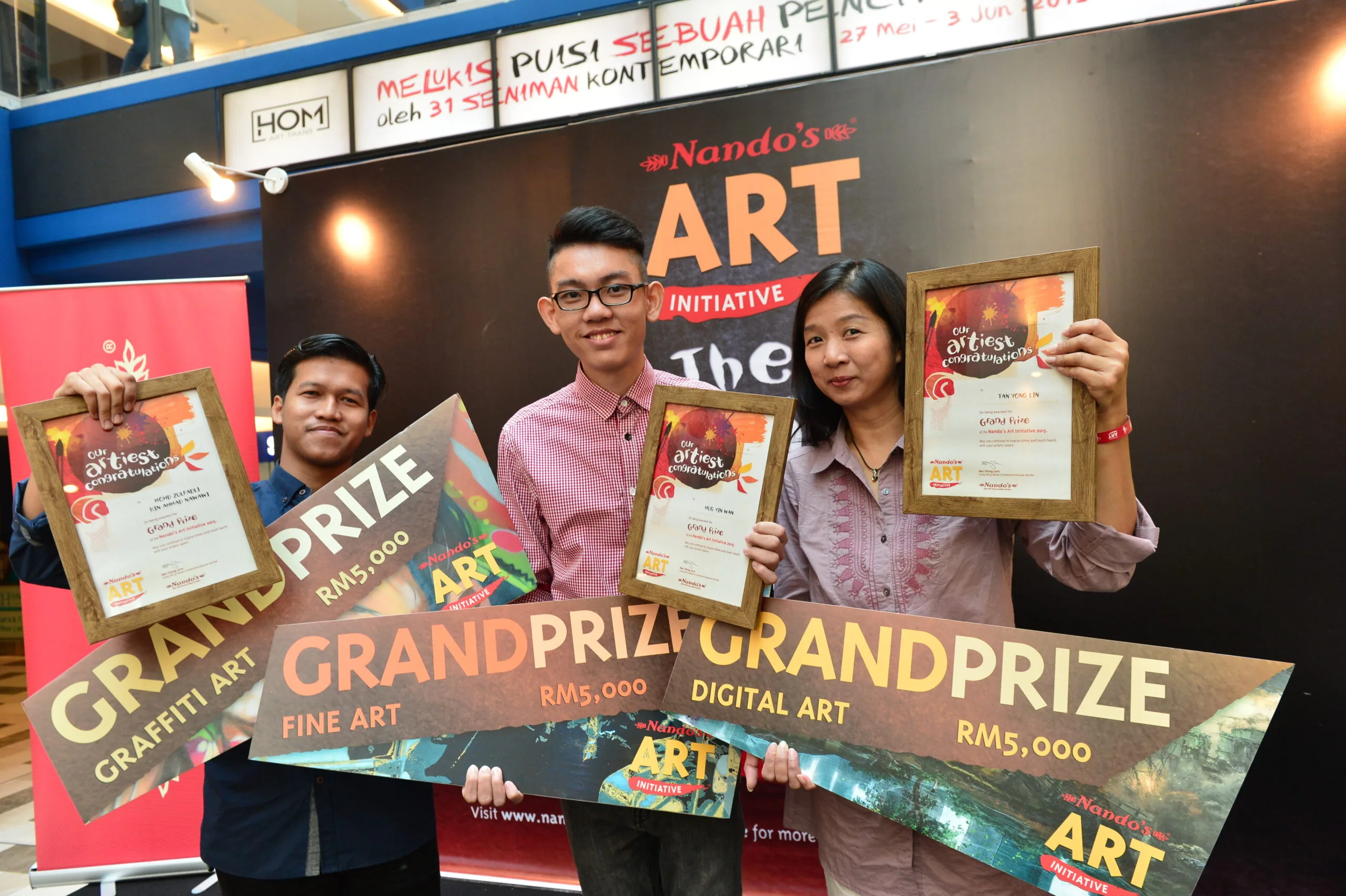 - Grand prize – Fully sponsored solo exhibition, RM5,000 cash and Nando’s vouchers worth RM500