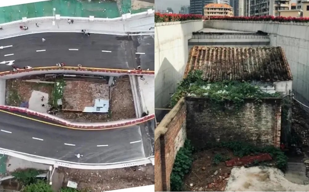 Negotiations eventually broke down and the government was forced to build around her. As a result, Ms. Liang’s little house is now sandwiched between two major roads. Some have dubbed the spot as “Eye of the Pearl” as the shape reminds them of a human eye. Many have also stopped by to visit the little house, which can be accessed by a route leading under the bridge.