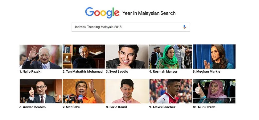 2018 is indeed the year of politics in Malaysia as the top 4 most searched individuals on Google are all from the political scene.