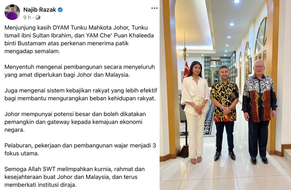 It was reported that Najib had met TMJ to discuss the state’s development and further potential if it is led by his political party, Barisan Nasional (BN), as per news outlet MalayMail. “Johor has a huge potential and can be the gateway for the country’s economic progress. Investments, employments and developments should be the three main focuses,” the political figure shared in his post.