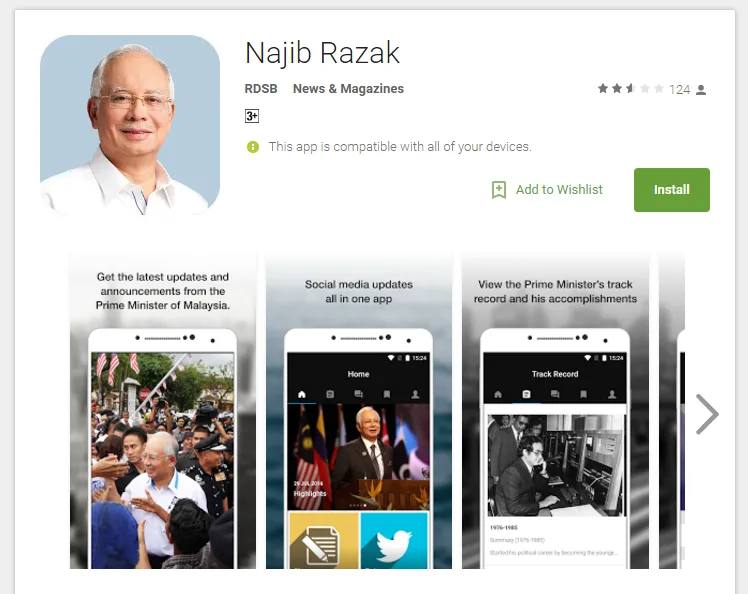 The app, simply named “Najib Razak”, will enable the public to interact and offer their ideas to the Prime Minister once they have registered their details on the app.