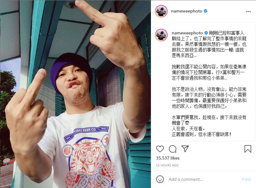 The rapper apologised for not being able to publicise the content yet. “If I’m unprepared, the X Party and the police won’t let me…” he said. Namewee promised that he is making preparations before the reveal. However, he has to act very carefully as he has no political backing. “The most important thing is to protect my family, (the victim’s) family, as well as myself,” he stated. “Justice will be late, but never absent!”