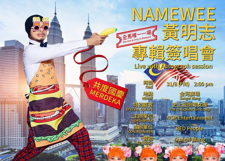 On this Friday (31st August), Namewee (黃明志) will be holding a special meet-and-greet with fans in Kuala Lumpur. He will be accompanied by girl group Amoi-Amoi.