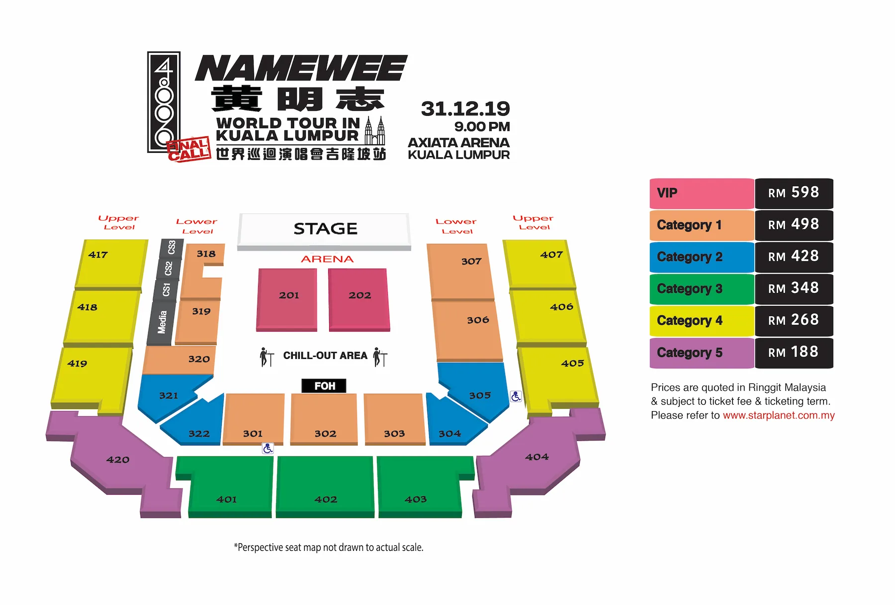 - Ticketing: RM598, RM498, RM428, RM348, RM268, RM188 (subject to RM4 ticket fee)