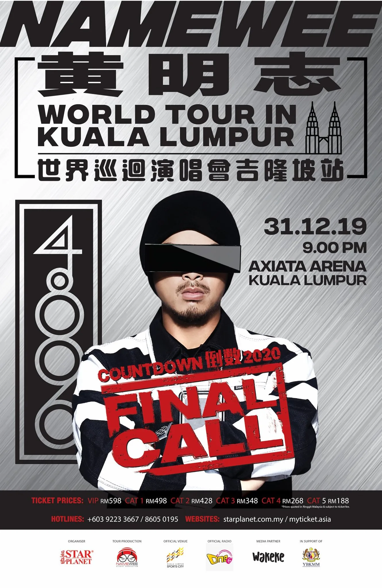 Brought to you by StarPlanet, the details to Namewee’s “4896-Final Call World Tour” in Kuala Lumpur are as follows: