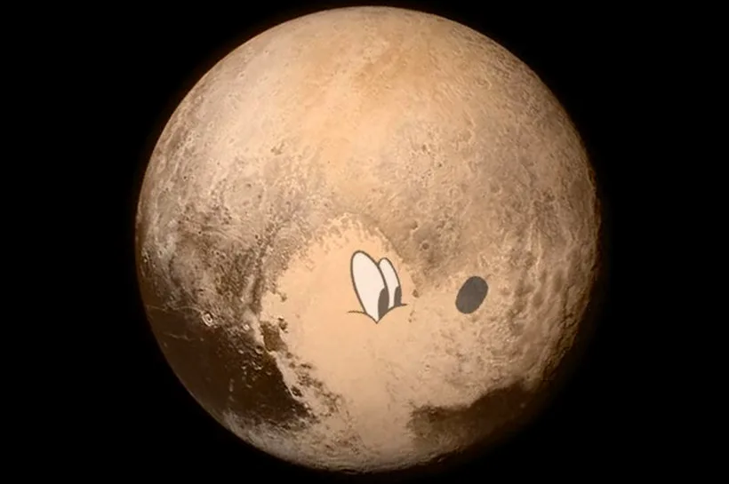 Now, some 31,714 days after Walt Disney first laid eyes on the now-dwarf planet (and 31,192 days after the rest of humanity found out), we finally see what he saw. Pluto’s origins. When NASA released its Instagram-exclusive photo of Pluto, it could’ve rotated it to any angle it wanted (of approximately 360 to choose from). It chose to honour the real founder of Pluto by presenting it as he clearly saw it.