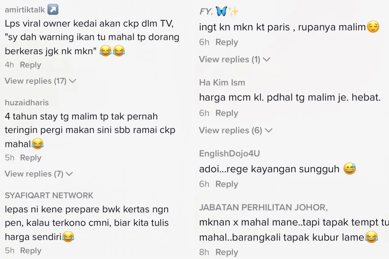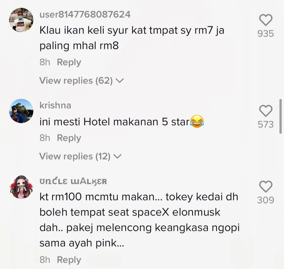 Despite being flabbergasted at the price, Malaysian netizens in the comments are as witty as ever. One sarcastically referred to the siakap issue from last year, “After going viral, the owner will go on TV and say, ‘I’ve warned that the fish is expensive, they still want to eat it.” Some quipped that the food is on par with a 5-star restaurant, while another said, “I thought it’s in Paris, apparently it’s just Malim.”