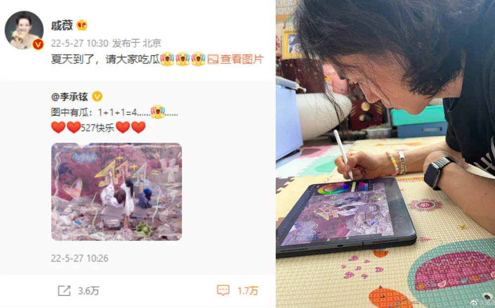 Nathan announced the news on his socials today (27th May). He posted a photo of his family of three with the message “There are melons in the picture: 1+1+1=4“. Nathan had also helpfully highlighted the watermelon in the photo, a clear tease directed to netizens. “527 (Love Qi Wei), happy,” he added.