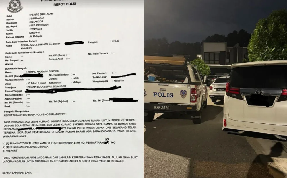 According to the police report as uploaded on the footballer’s Instagram, it is possible that the matter occurred after Ahmad Khuzaimi left for training at around 2pm. He arrived home around 9pm and realisation hit him when he noticed his front and back gates were left ajar.