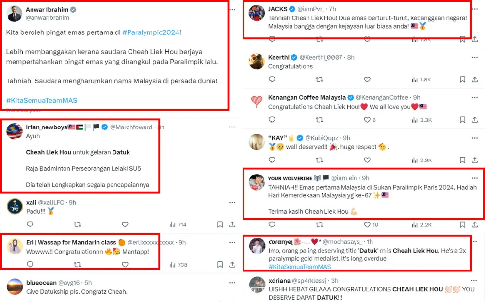 Many Malaysians have taken to social media to celebrate Cheah Liek Hou’s win. Many, including Prime Minister Anuar Ibrahim, thanked him for contributing another gold medal for Malaysia and making the country proud. Following his win, some netizens also voiced support for the athlete to be awarded a datukship for his contribution, saying it’s an apt recognition for him.