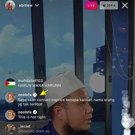 Neelofa has spoken up after her name and that of her husband’s were seemingly brought up by Caprice, in the midst of his intensified feud with Muslim preacher Ustaz Ebit Lew.