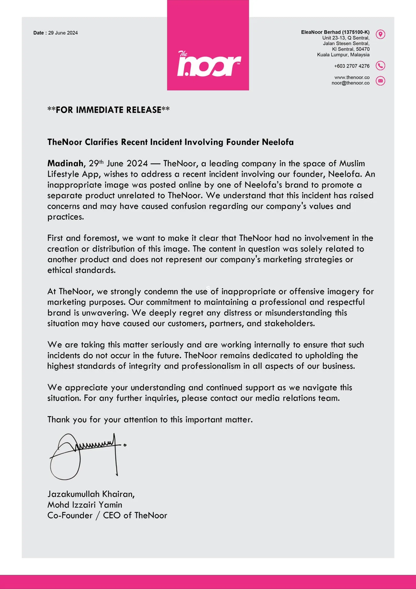 The account quickly took down the postings and apologised for the graphics, adding they would be more cautious in the future. Nilofa’s parent company, TheNoor, also released a separate statement on the issue, saying it strongly condemns the usage of inappropriate or offensive imagery for marketing purposes. However, the group claimed it had no involvement in creating or distributing the image but is working to ensure such incidents won’t occur again.