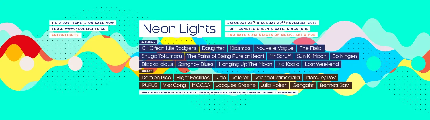 Here’s the day by day line-up for the inaugural Neon Lights festival in Singapore! Plan your travels well so that you won’t miss any of your gigs 😉