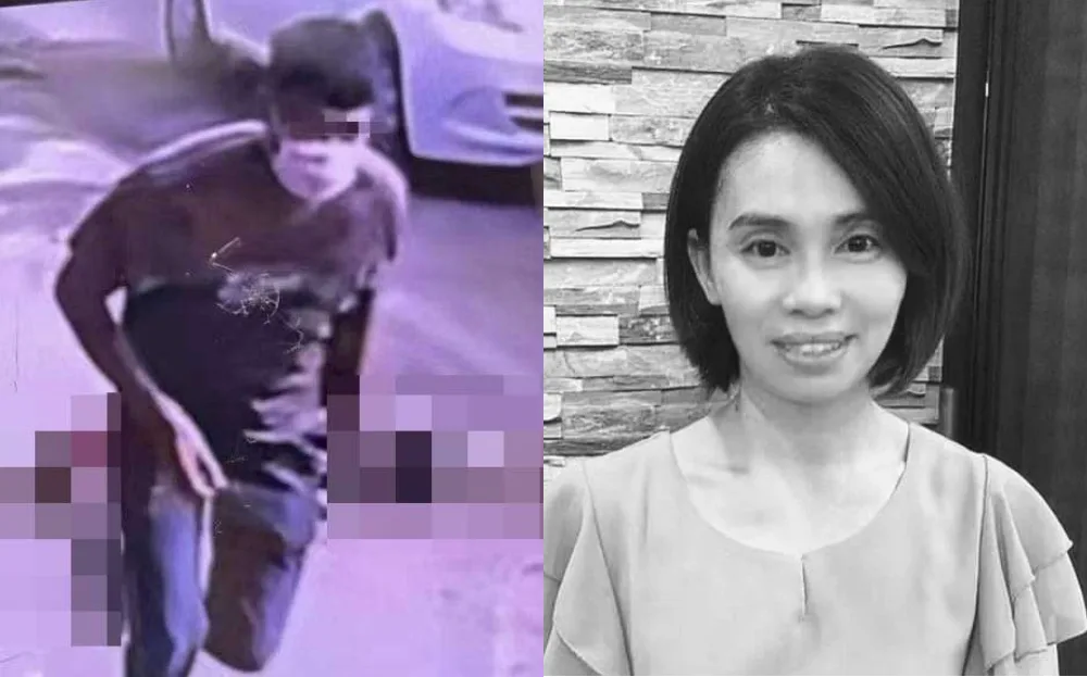 CCTV footage later showed the victim walking with another woman down the road when she was attacked. Apparently the murderer had ran up behind the two ladies while taking a parang out from a bag to stab the victim. He stabbed her twice before she fell in a pool of her own blood, then he stabbed her five more times before dropping the knife and fleeing.