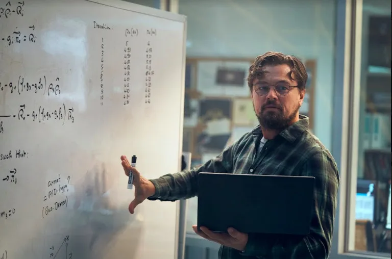 Oscar-winning actor Leonardo DiCaprio stars as Dr. Randall Mindy, a tenured professor of astronomy who finds out that Earth is bound to death by a gigantic comet along with Kate Dibiasky. He also heavily credits Dr. Amy Mainzer who helped him round out his portrayal of the sweet and vulnerable scientist.