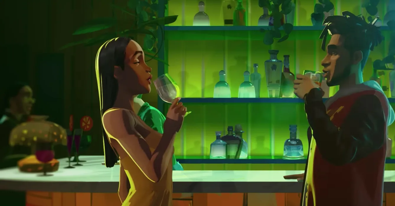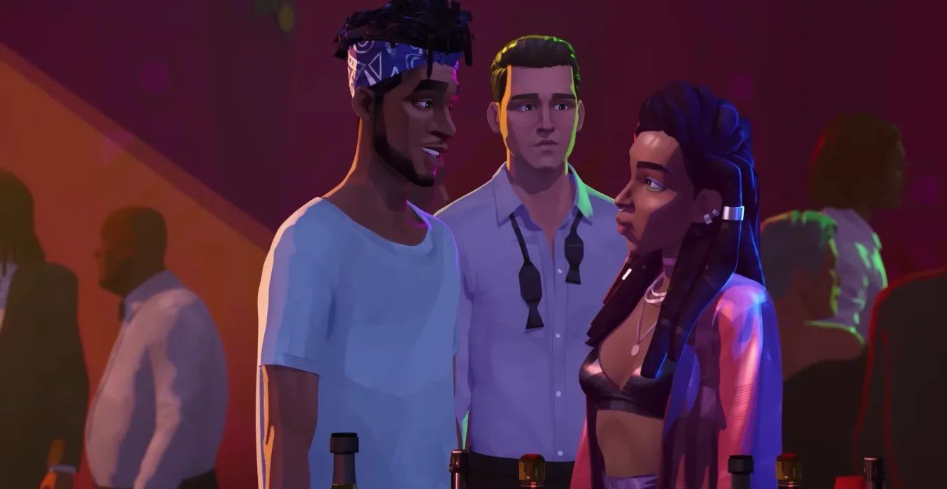 We would, of course, be remiss if we did not acknowledge the amazing work that studios Khalabo Ink Society, DNEG Animation and Mad Solar put into bringing Kid Cudi’s vision to life. The clearest inspiration for the show’s aesthetics is obviously its uncanny resemblance to that of Sony’s “Spider-Man: Into the Spider-Verse”. Namely, in the way character models forgo photo-realism for a hybrid between the hand-drawn intricacy of 2D animation and the dynamic depth of 3D-CGI. What sets “Entergalactic” apart from Sony’s film though is its use of colours. In “Into the Spider-Verse”, the colours pop bright as they would in a comic book as if the characters are leaping out of a page and onto the screen.