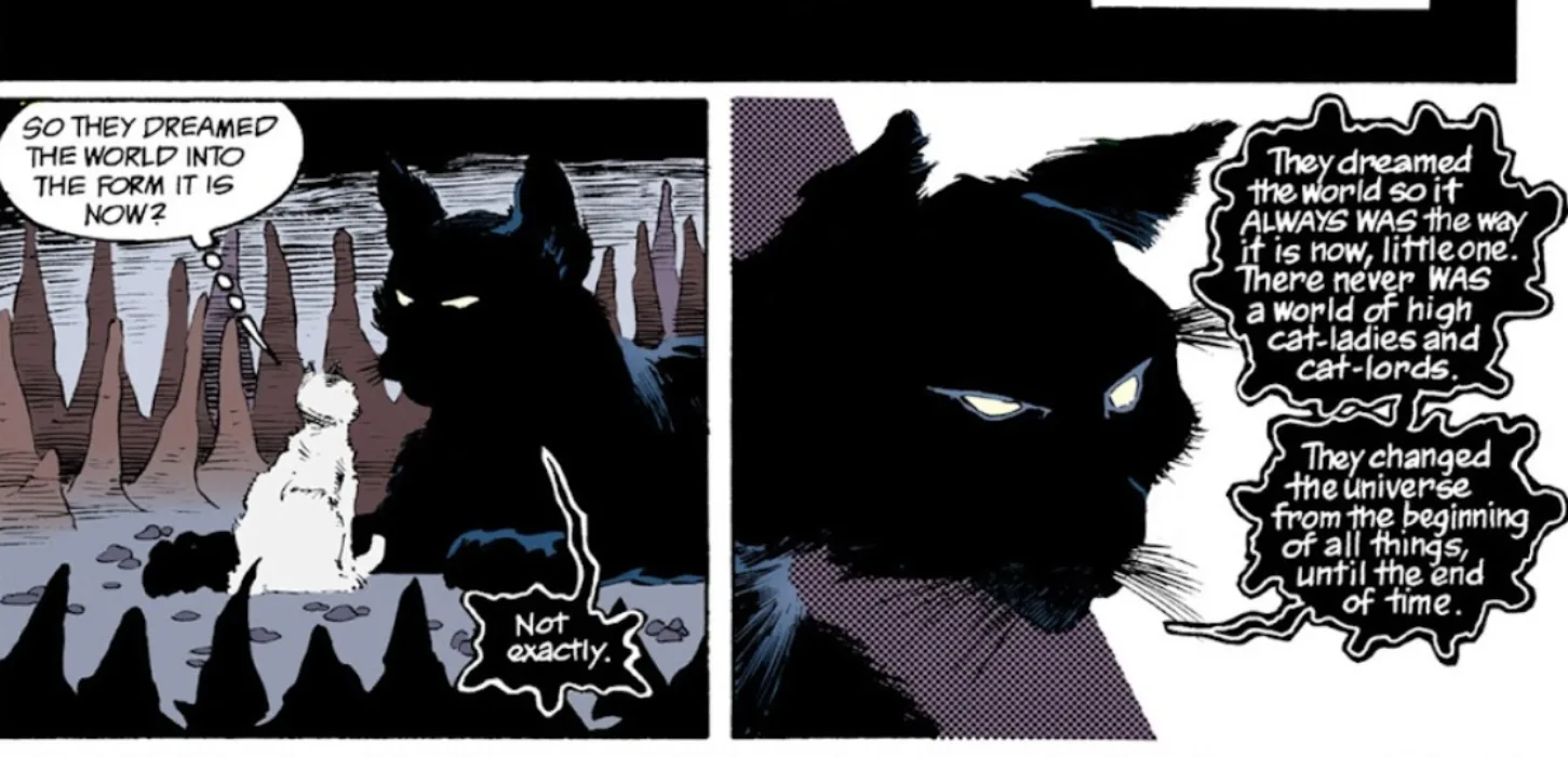 For the most part, the stories in “The Sandman” are often anthological, meaning it doesn’t always follow a linear structure. Sometimes the Lord of Dreams is wrestling with demons and holding council with the various gods of human culture. Sometimes, he’s swept up in ancient romances and visiting the artists of antiquity. Other times, he’s literally talking to dreaming cats!