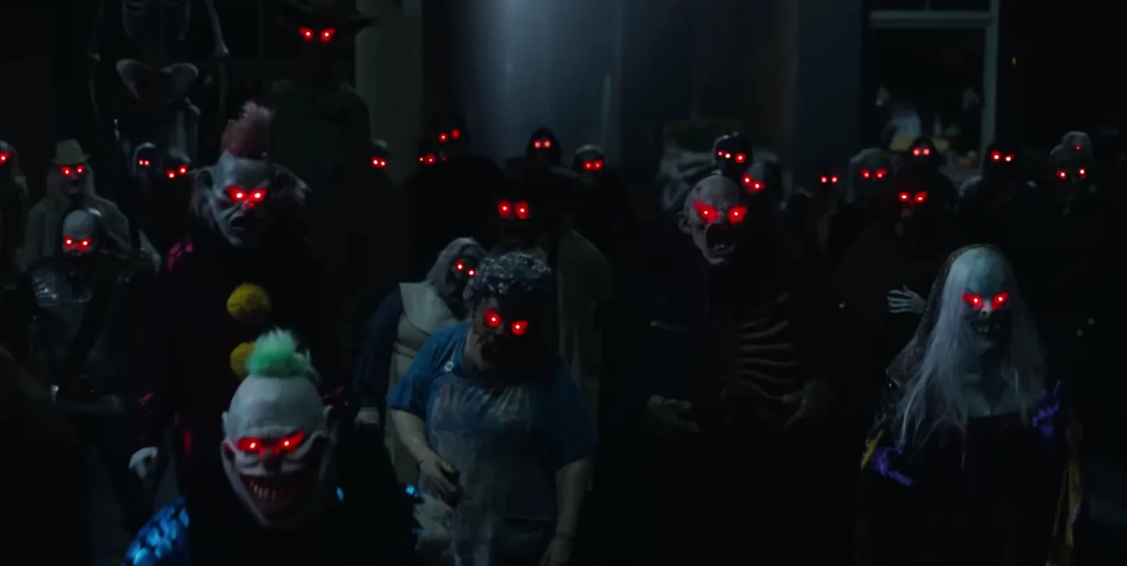 As we mentioned, this film is family-orientated so don’t expect to see gore or too many jumpscares. Most of the time when the film dips into the realm of horror, its edge is often undercut by either a cheeky quip, some mild absurdity or a zany fight scene. Barring a few scenes involving some CGI, a lot of the spooky moments here are brought to life via practical effects and stunts which is something we absolutely commend! There’s an intentionally campy, B-movie style to the aesthetics which fits in perfectly with the film’s premise. They’re cheap Halloween costumes and animatronics so it makes sense that there be a tinge of silliness to their malevolence.