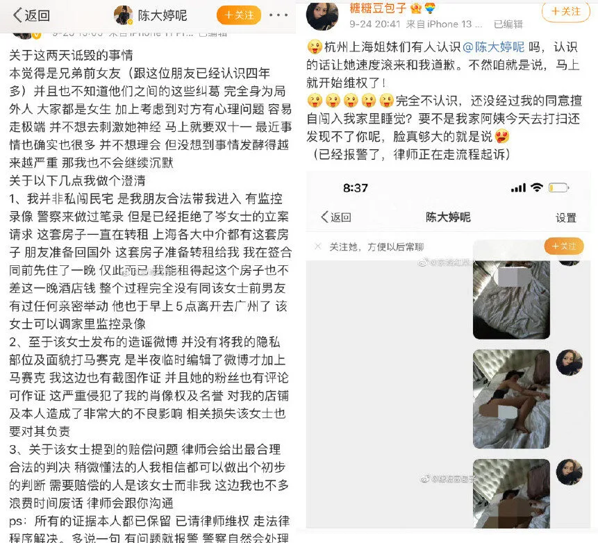 On 24th September, Buns took to Weibo to call the blogger out. She released photos of the blogger in bed as evidence and asked: “Is this you? A girl who illegally invades other people’s homes and sleeps naked on the bed? If you have the money to buy a Hermès, don’t you have the money to get a house?”